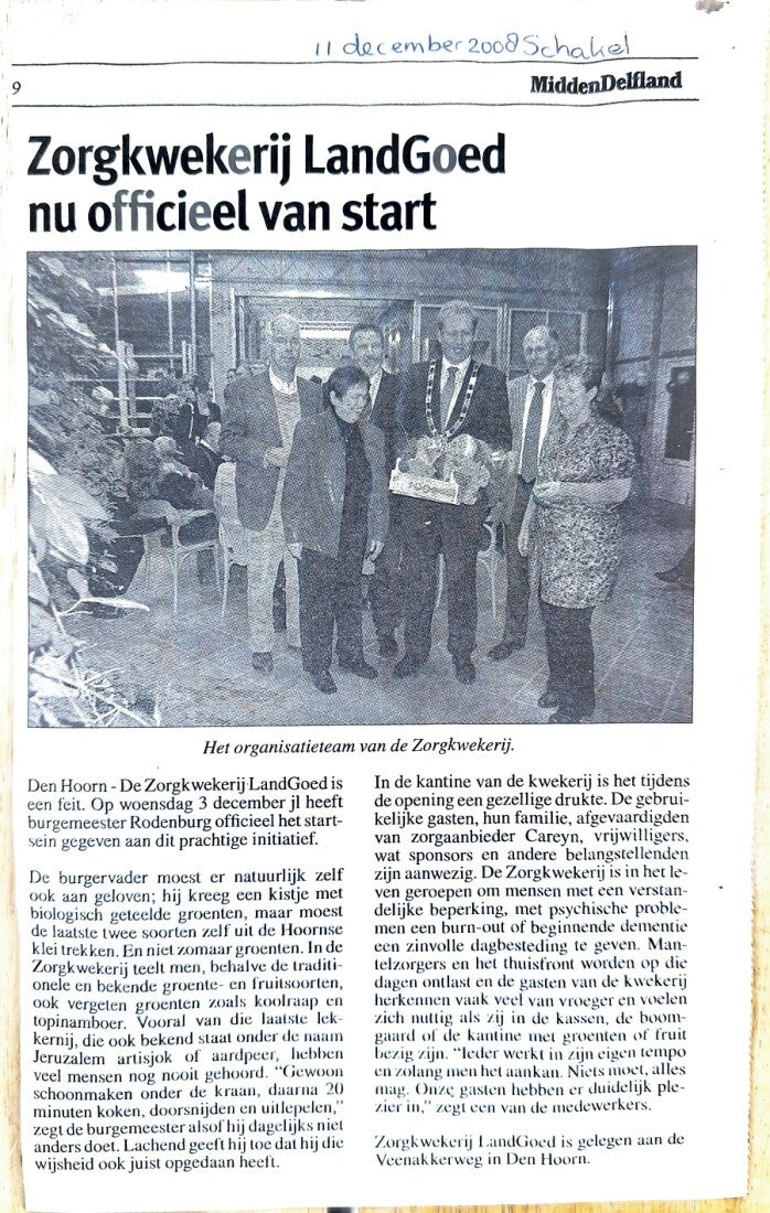 De huidige eigenaren willen het telen in de kas aan anderen overlaten. In eerste instantie is gekeken of een 'herenboerderij' mogelijk was, maar daarvoor bleek het perceel te klein. De initiatiefnemers hebben toen gezocht naar belangstellenden om samen een vereniging op te richten. Daar bleek veel belangstelling voor, zoals het krantenbericht onderaan en de foto's laten zien! En dat was het begin van Tuinderij Veenakker.